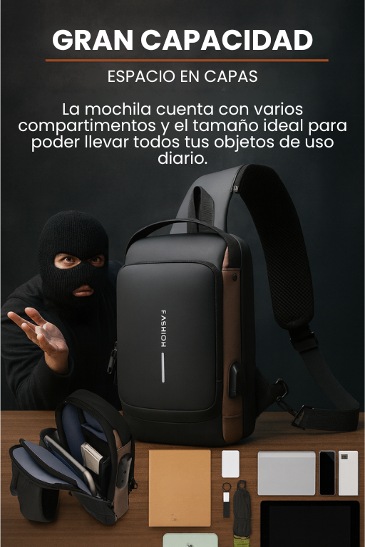 🎒 Diseño ergonómico y urbano para moverte sin miedo, con total estilo y comodidad.