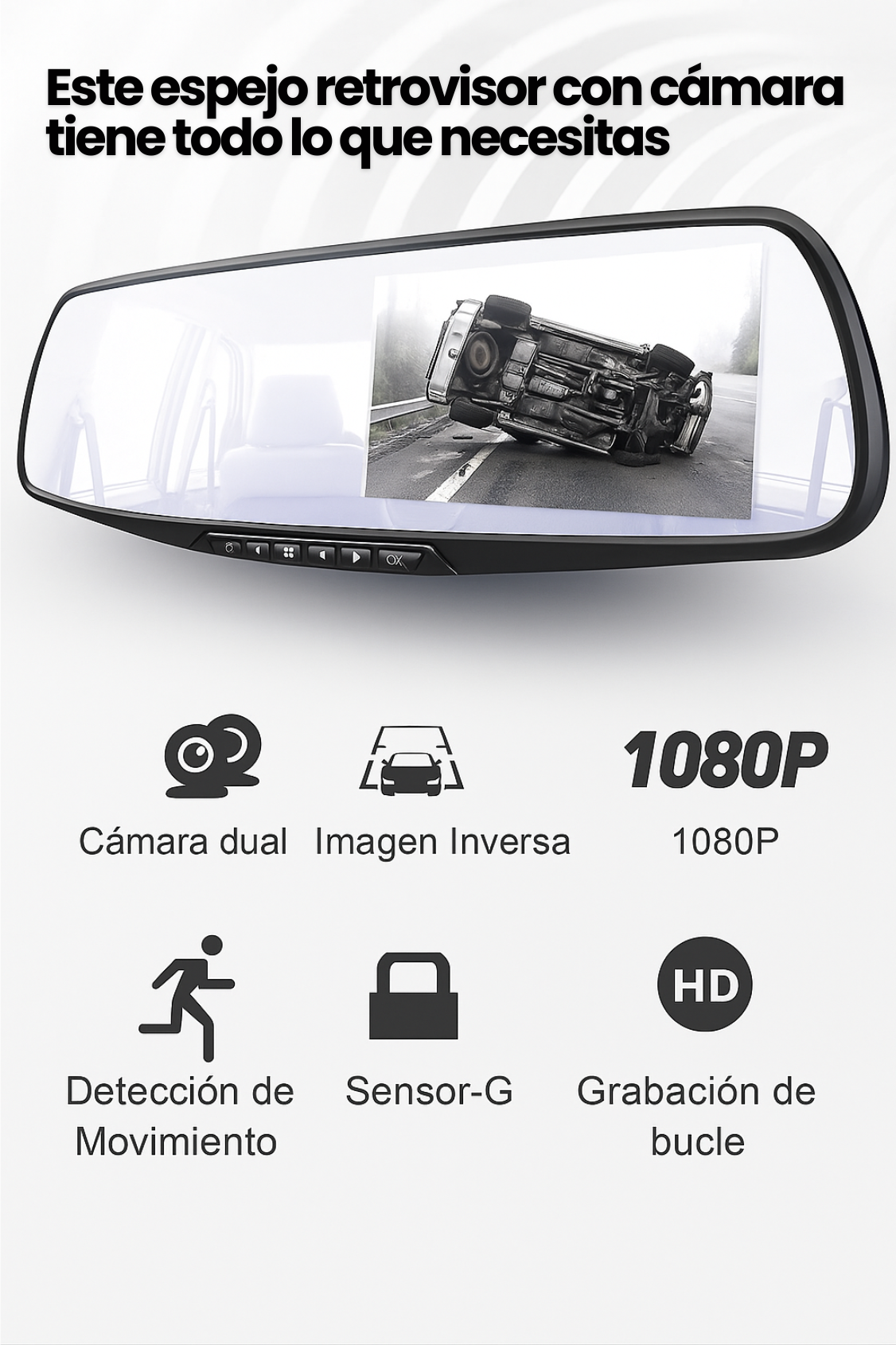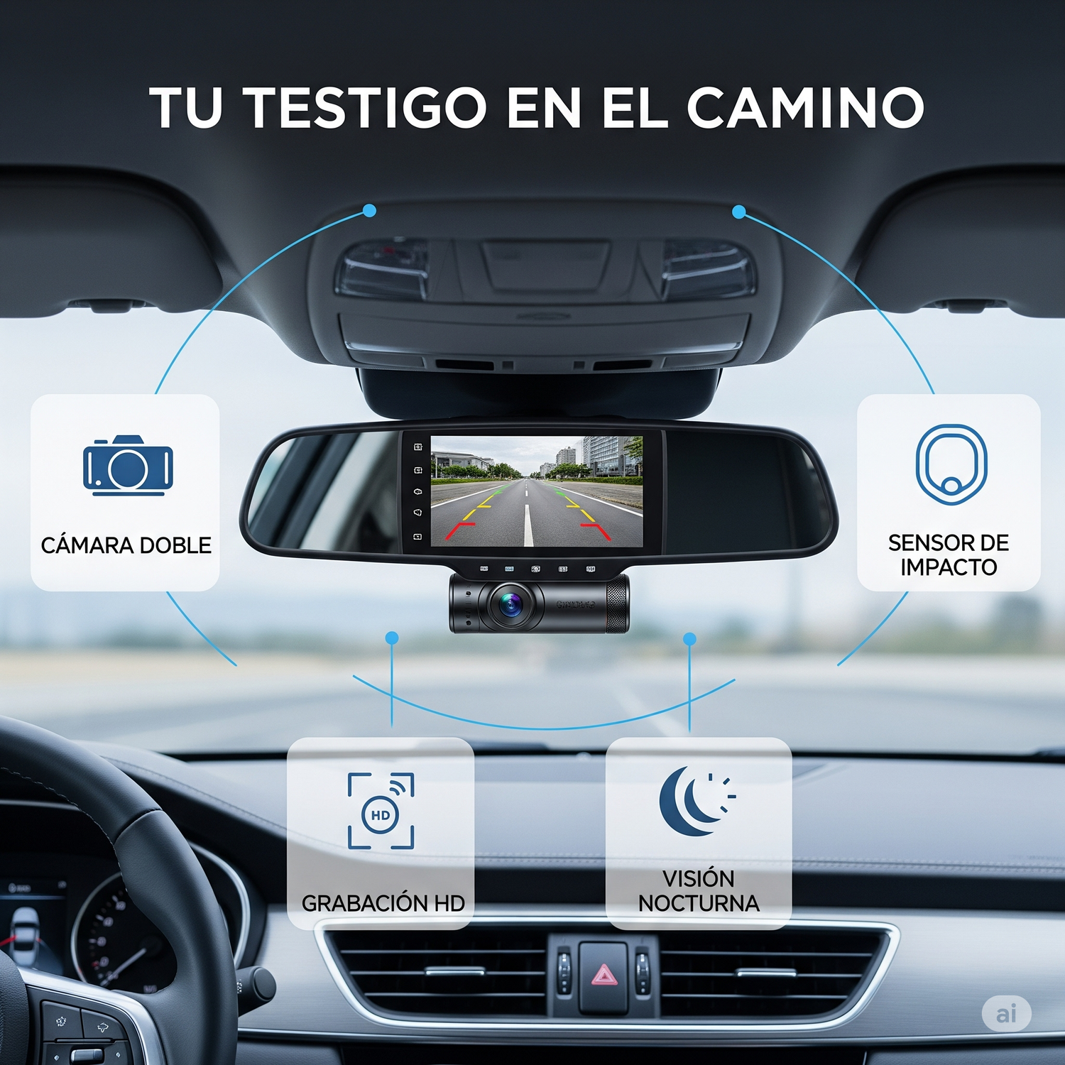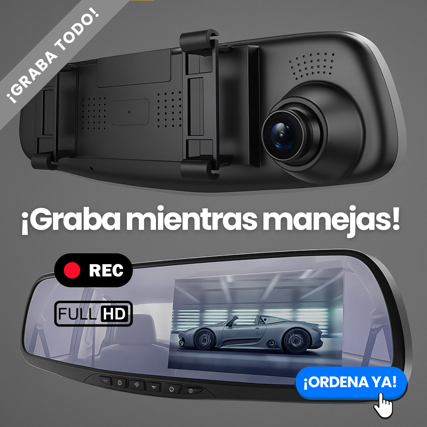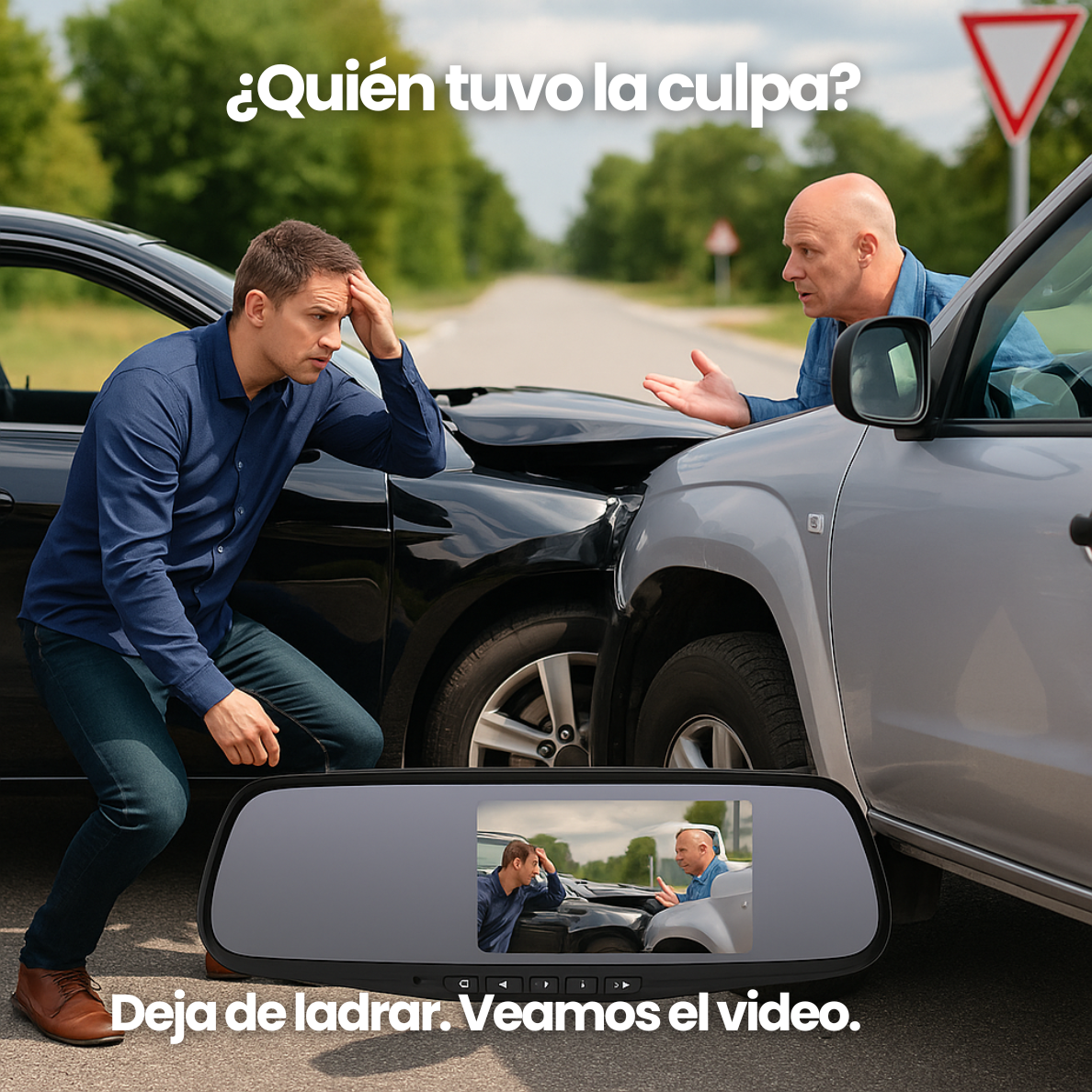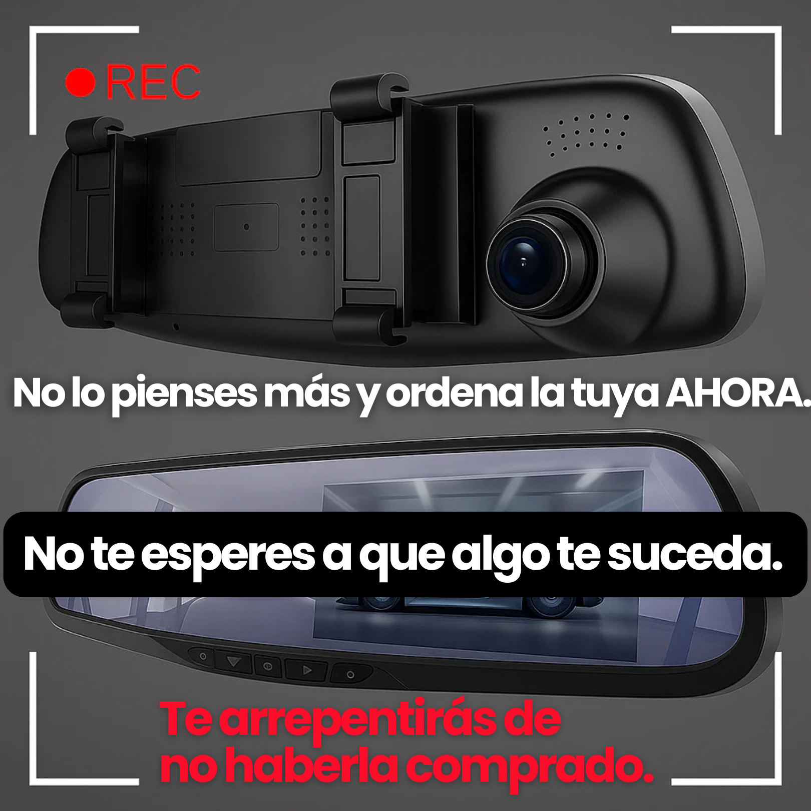 Esta cámara espejo no es un adorno. Es tu mejor inversión. Se instala fácil sobre tu retrovisor actual, graba en alta definición