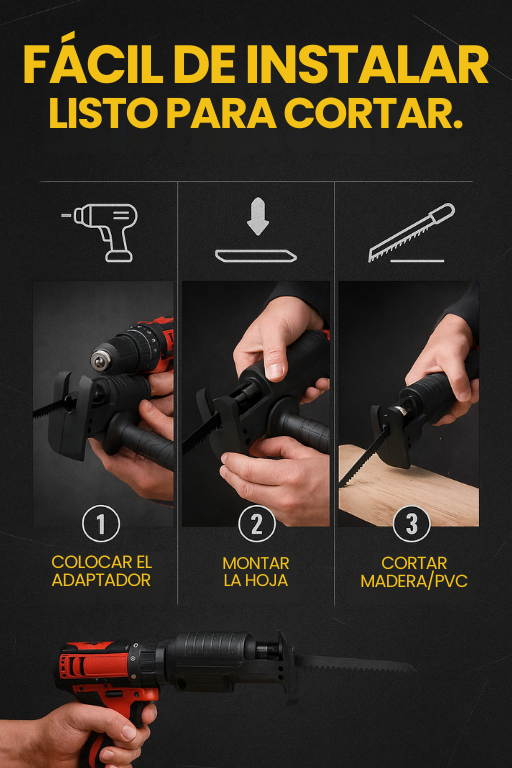 El Adaptador de Sierra transforma tu taladro en una herramienta de corte potente y versátil.