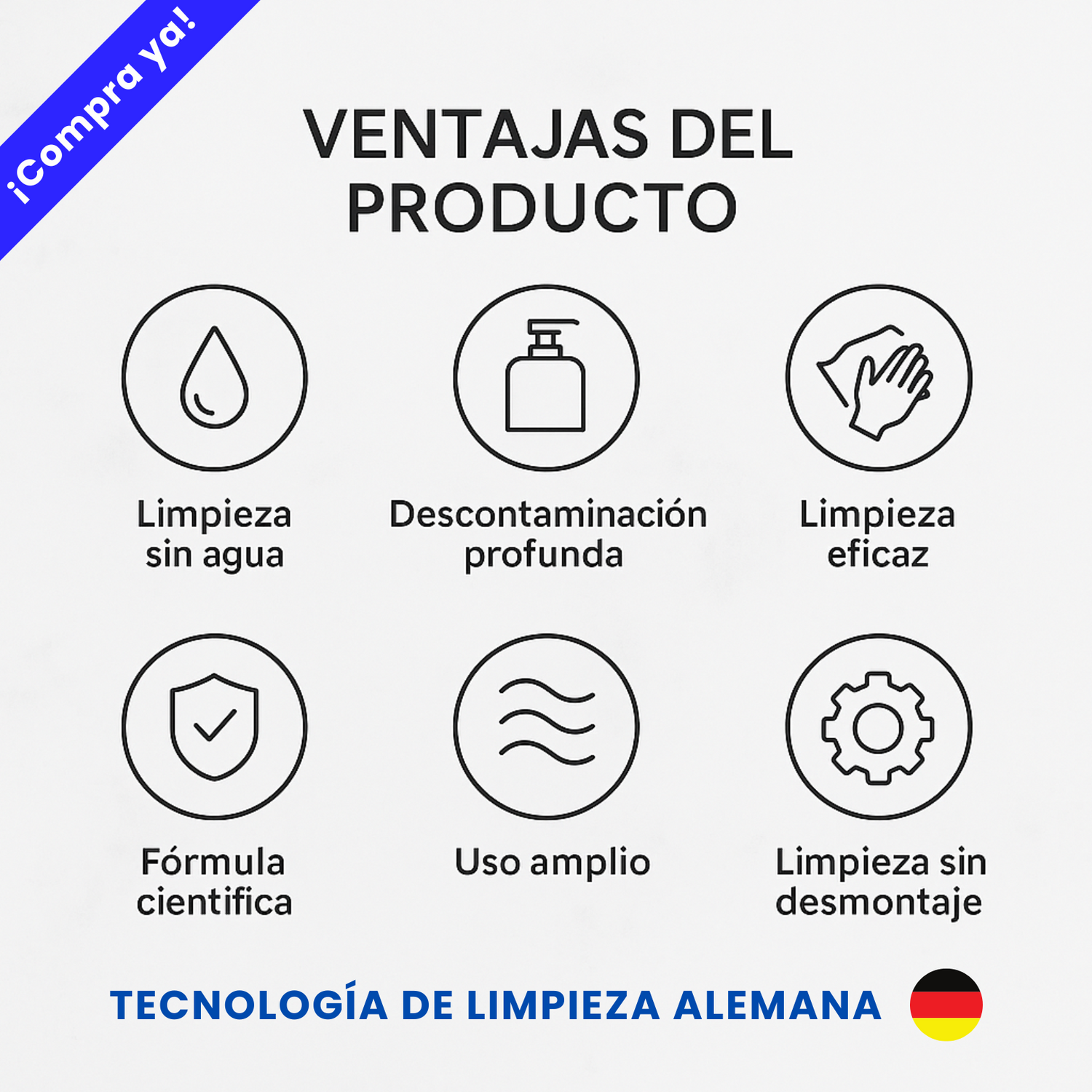 - 💧 Sin necesidad de agua adicional para enjuagar.