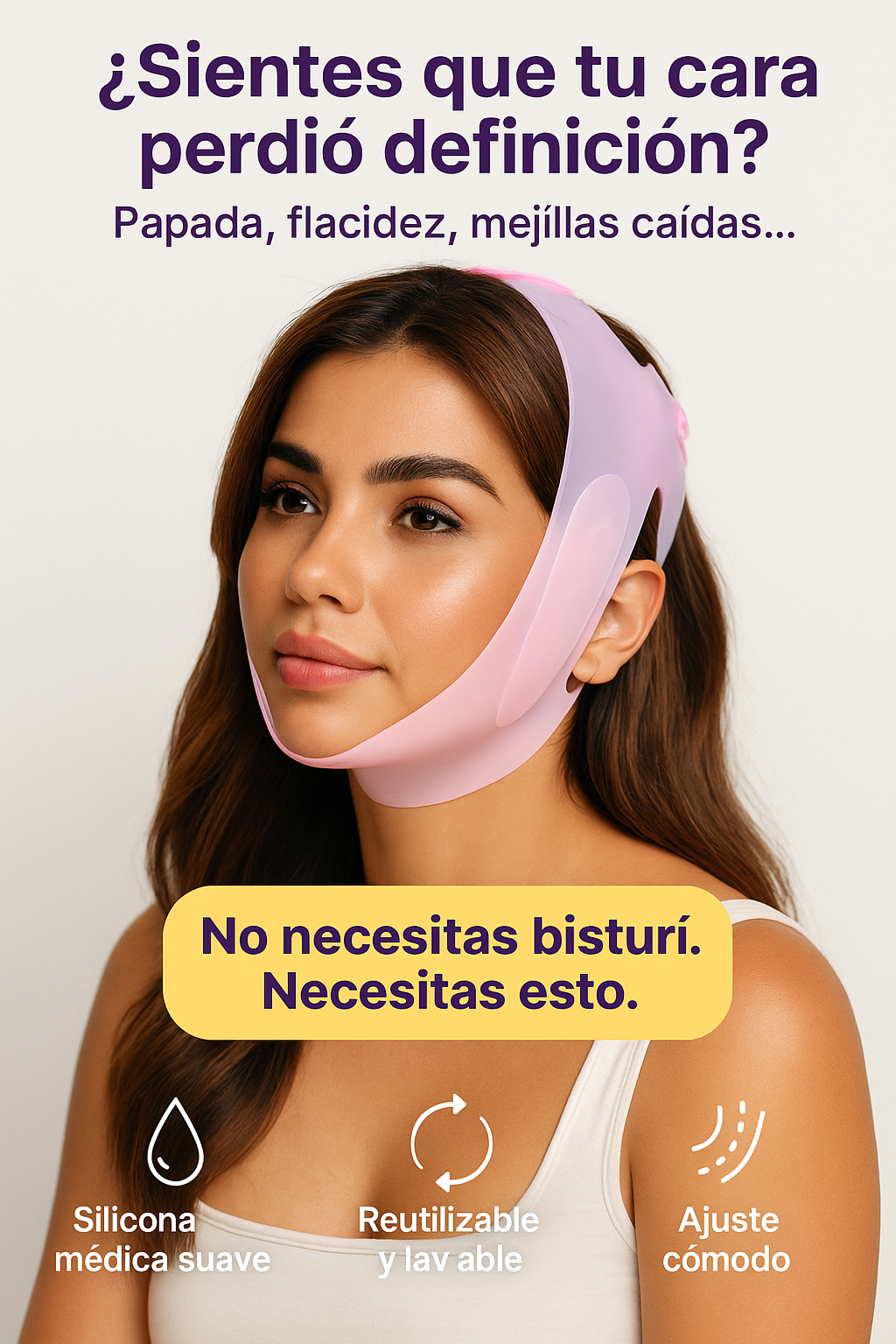- 💆♀️ Levanta la papada – Sujeción firme que moldea el contorno.