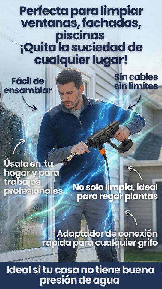 Hidrolavadora Portátil Inalámbrica de Alta Presión con 2 Baterías Recargables