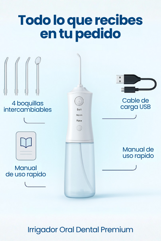 Irrigador Bucal - ¡Lava tus dientes, lengua y encías con agua a presión!