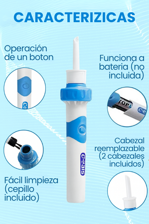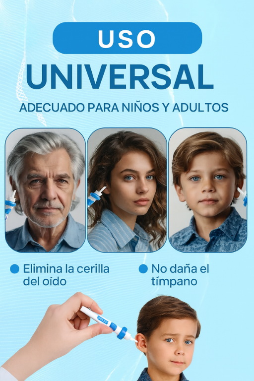 🌀 Usa succión suave y una punta flexible para dejar tus oídos limpios y despejados.