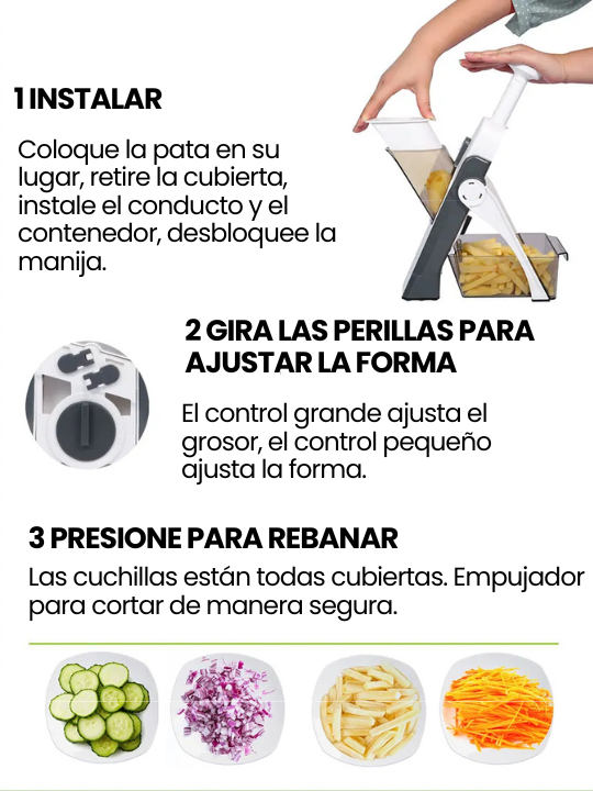 Más rápido, más seguro y sin cambiar de utensilios 🙌Rebanadas, tiras y cortes parejos en minutos.