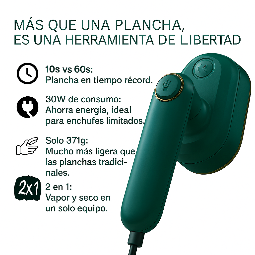 Ya sea que viajes por trabajo, placer, vivas en movimiento o simplemente busques ahorrar espacio y tiempo, esta mini plancha de vapor es tu aliada perfecta.
