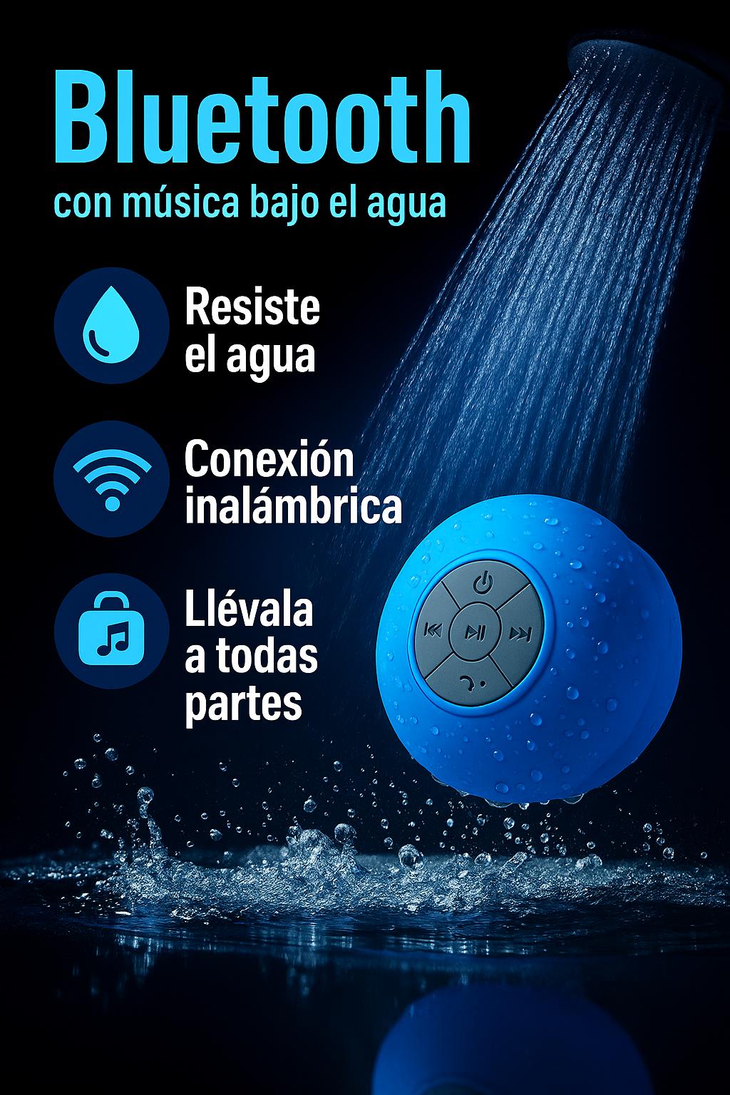 Bocina para Regadera con Bluetooth y Ventosa - Portátil & Resistente al Agua