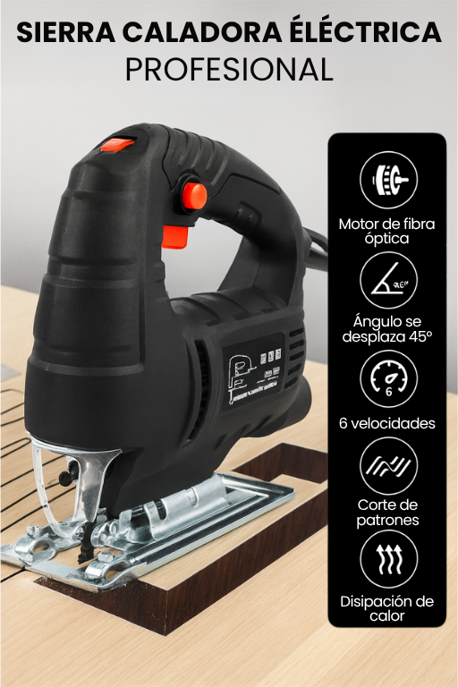 Sierra Caladora Eléctrica 6 Velocidades, 3000 RPM + Accesorios