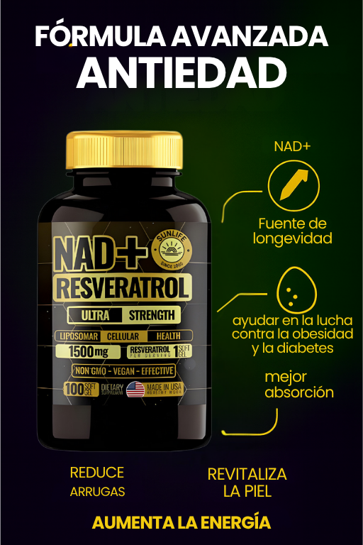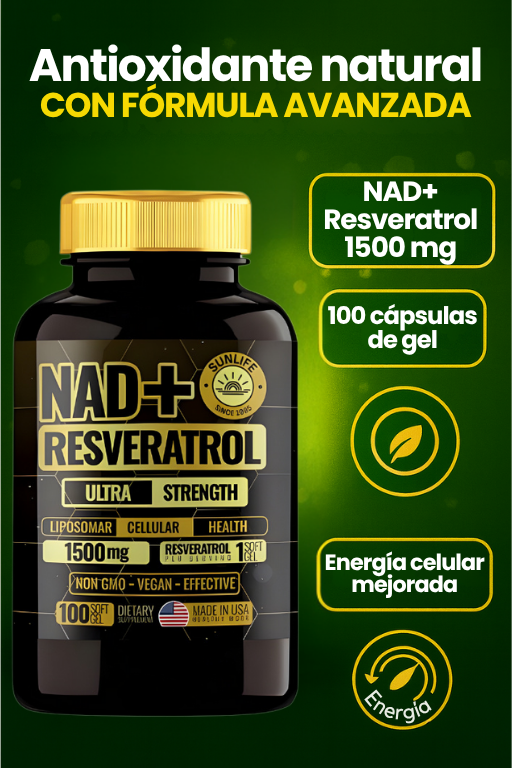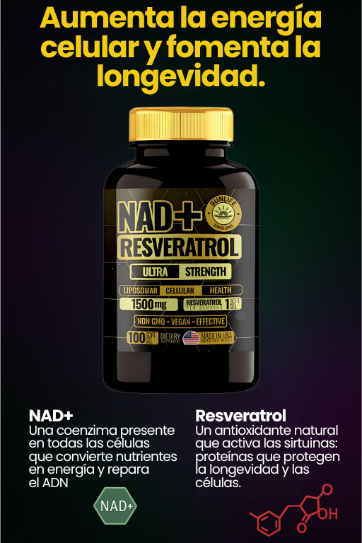 NAD+ Resveratrol 1500mg es tu escudo diario contra el envejecimiento 🛡️💥.