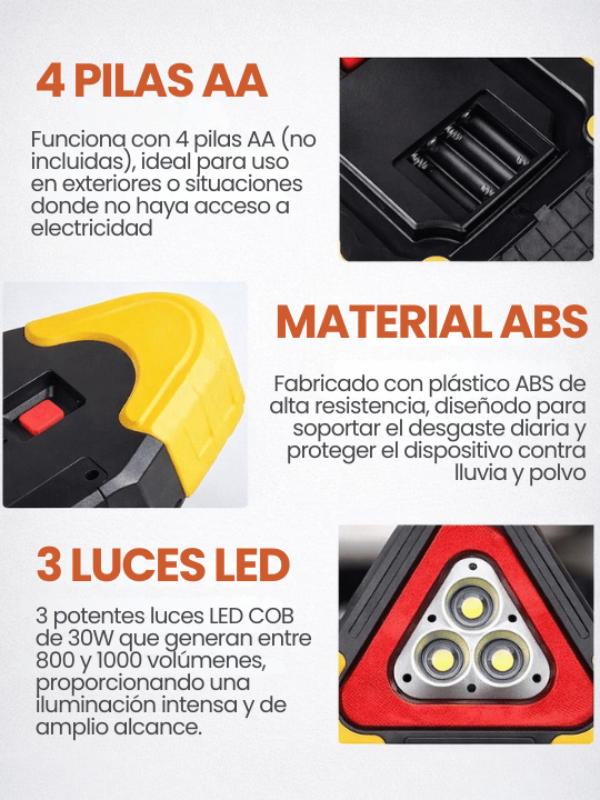 Triángulo de Seguridad LED Solar Reflectante para Emergencias Vehiculares ¡Evita un accidente!