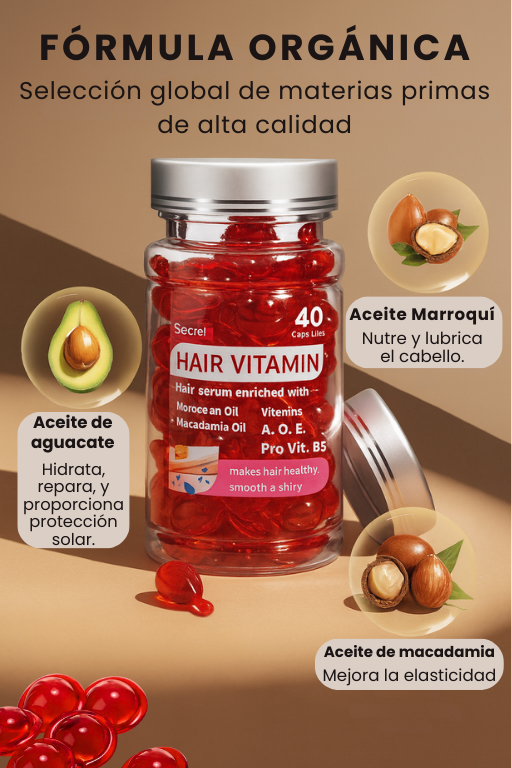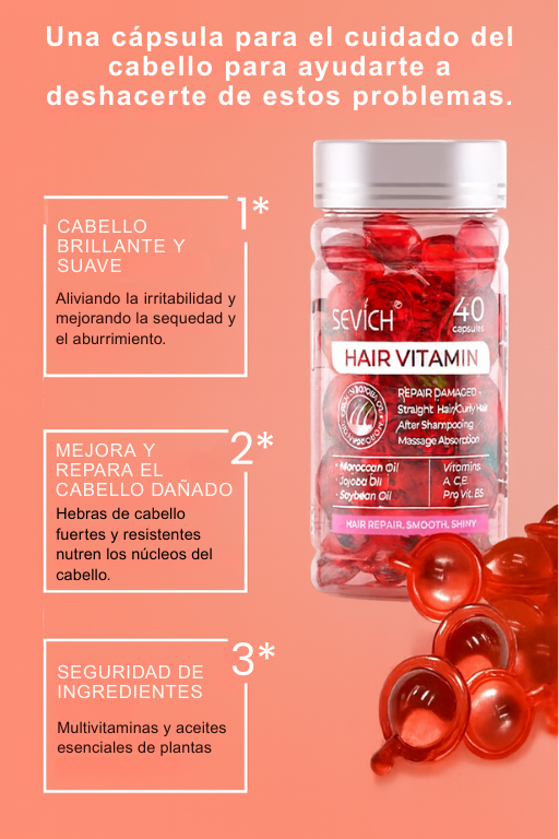Vitaminas en cápsula para el Cabello - ¡Repara, Nutre y Suaviza! - 40 Cápsulas